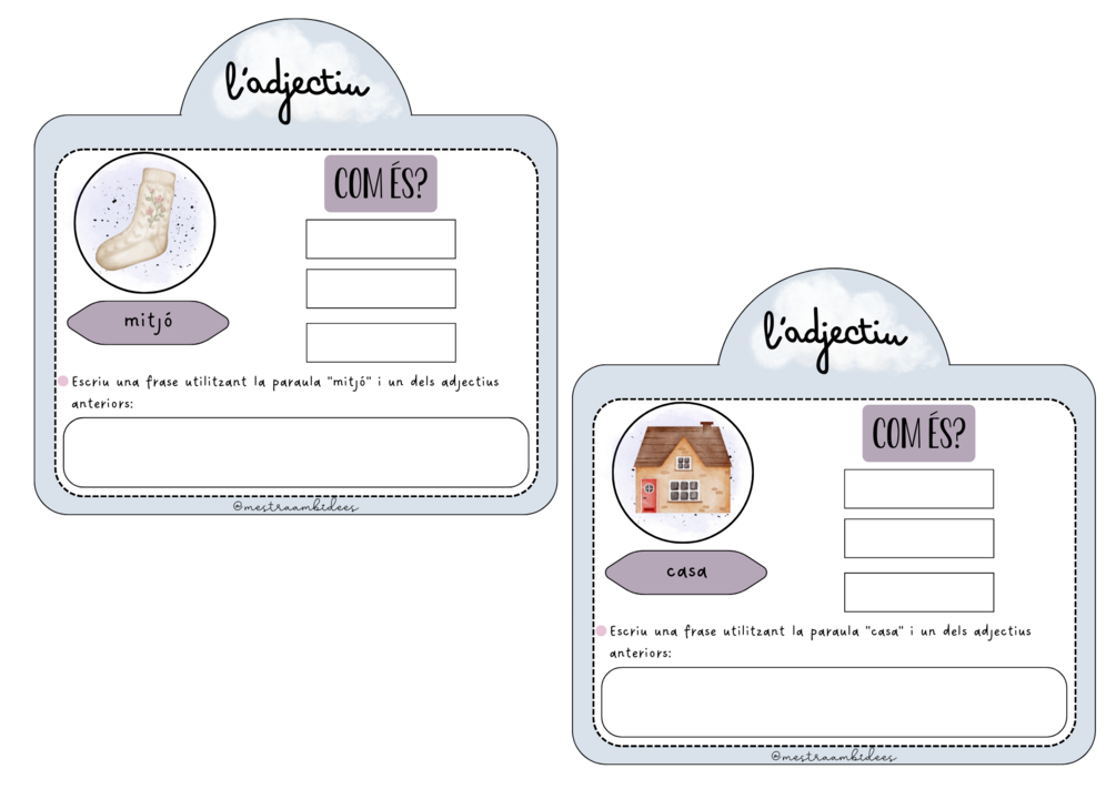 El clauer interactiu, el qual pots plastificar per fer-lo més manipulatiu (té una llista d'adjectius per enganxar als espais) o bé fer-lo d'un sol ús. Si vols afegir-hi dificultat, pots no utilitzar la llista d'adjectius i que els alumnes escriguin de nous.